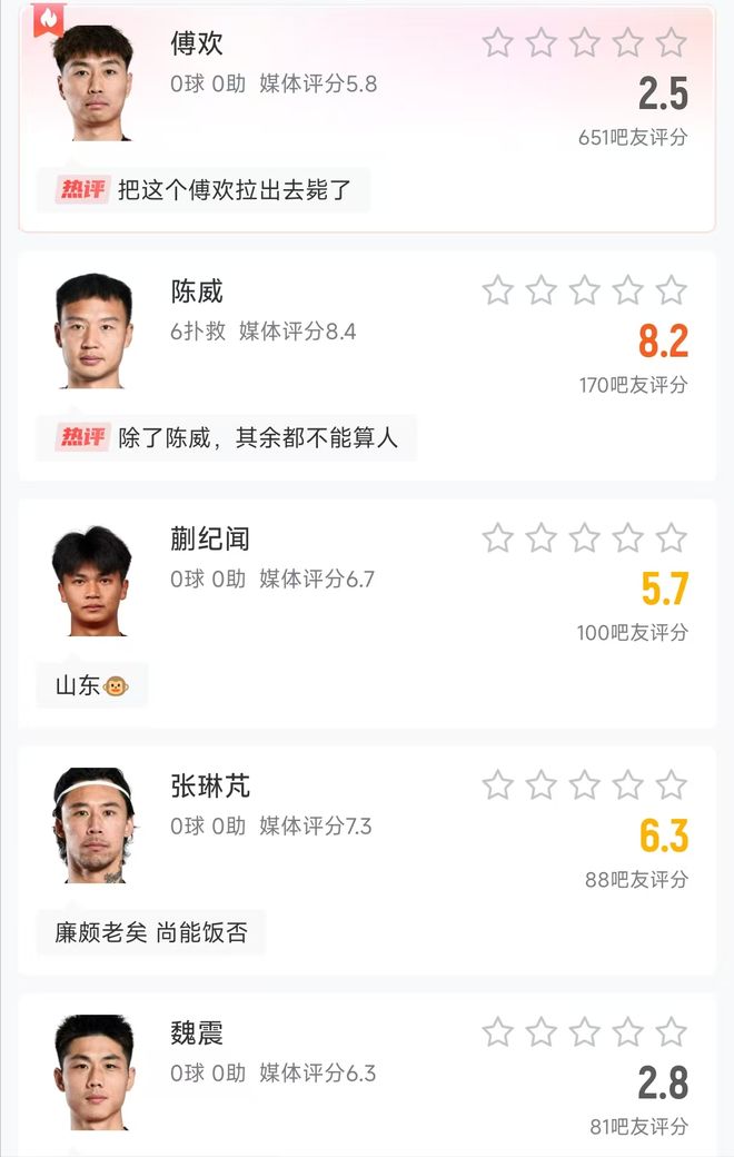 而在赛后,也是有球迷揪出了导致上海海港输球的三名罪人,首先就是打进乌龙的傅欢,他在全场比赛丢失球权数达到12次的同时,还获得了全场最低分2.5分,不少球迷也是直言,傅欢完全就是在冒充职业球员。