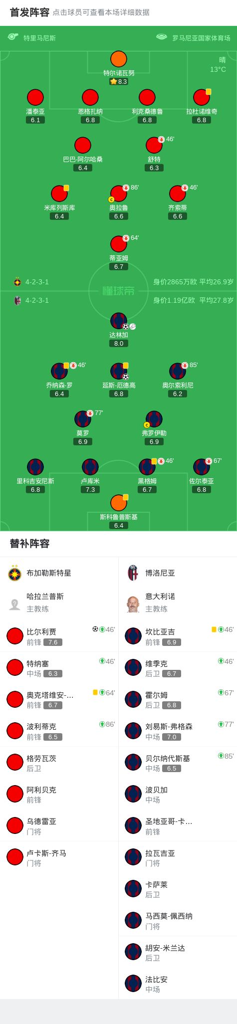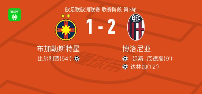 北京时间10月24日,欧足联欧洲联赛联赛阶段第3轮展开较量,布加勒斯特星迎战博洛尼亚。比赛伊始,博洛尼亚率先打破僵局,延斯-厄德高接队友传球后冷静施射得分。随后不久,达林加在进攻中抓住机会再下一城,帮助球队扩大领先优势。下半场易边再战,布加勒斯特星展开反击,比尔利贾在关键时刻挺身而出,攻入一记精彩进球,为球队扳回一城。此后双方均未能改写比分,最终全场结束,布加勒斯特星以1-2不敌博洛尼亚。