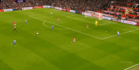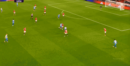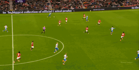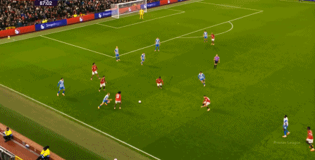 而布莱顿的换人则更早一点,许尔策勒换上了米尔纳、迭戈-戈麦斯和小将沃森,虽然单点的效果不会像常规计划当中,比如吕特上场那么明显,但一次换三人,总会给曼联带来一些压力,于是在0-3之后,布莱顿放开手脚,准备强攻: