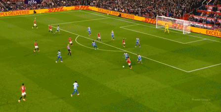 凭借这一球带来的心气提升,布莱顿在之后的进攻变得更为强劲,曼联中后场的压力则愈发增加: