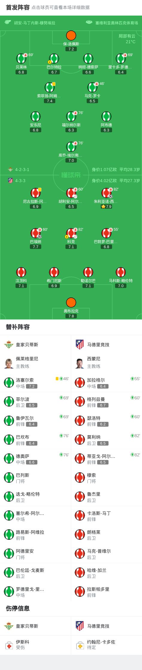 皇家贝蒂斯vs马竞:安东尼、贝莱林首发,胡利安-阿尔瓦雷斯、奥布拉克出战