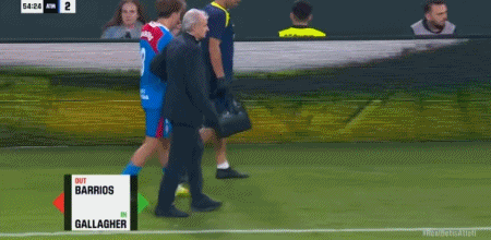 第55分钟,巴里奥斯内收肌拉伤被换下,加拉格尔替补登场